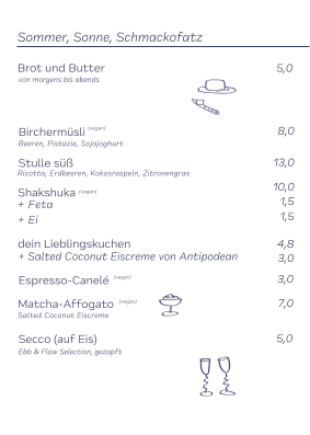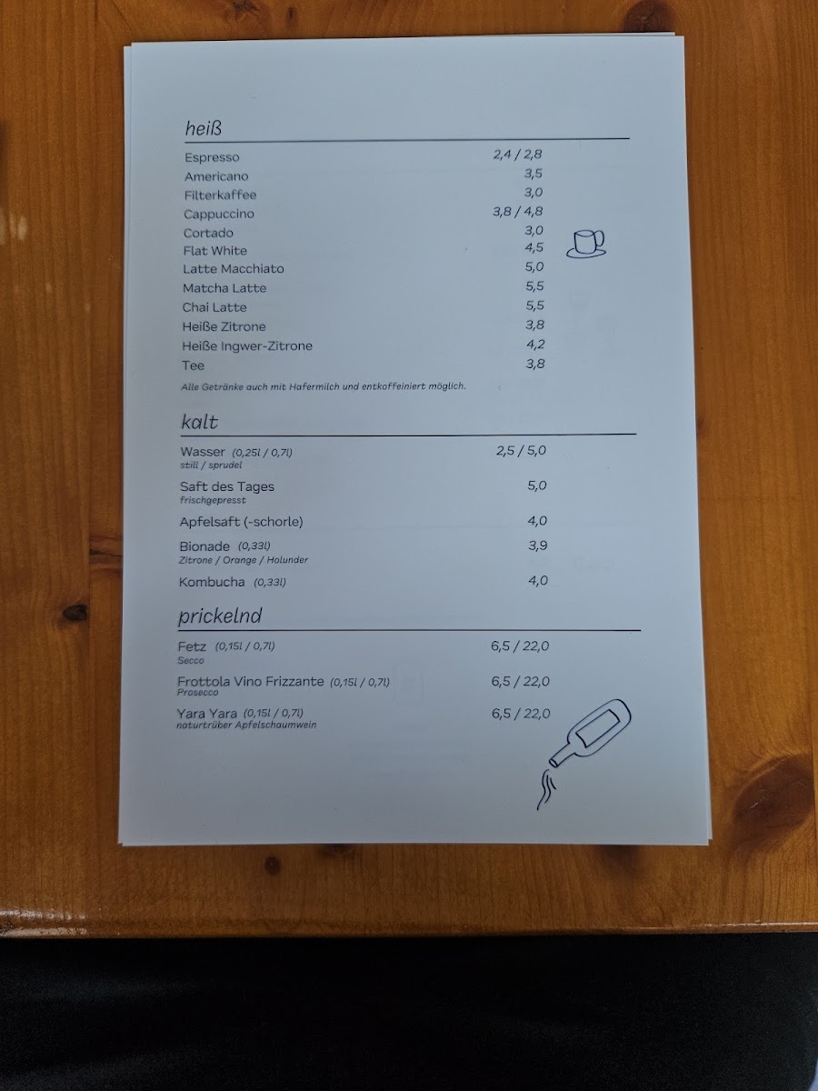 The food options primarily include bakery items such as sourdough bread and pastries, with canelé highlighted as a notable specialty. Light meals and snacks like muesli are also available, reflecting a focus on simple, European-style café fare.